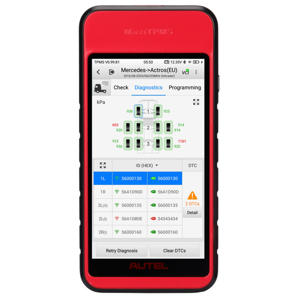 Android-based wireless TPMS Tablet for Light, Medium, and Heavy-Duty Vehicles.