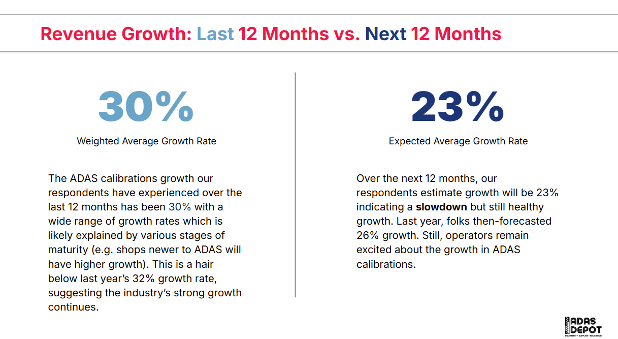 We asked participants to highlight the growth rates they experienced in 2025. Fortunately, the growth of the industry remains strong, and the growth rate for ADAS calibration revenues over the last twelve was around 30%. This shows that the growth of the industry continues. Moreover, people expected growth over the next twelve months to continue to be solid at 23%.