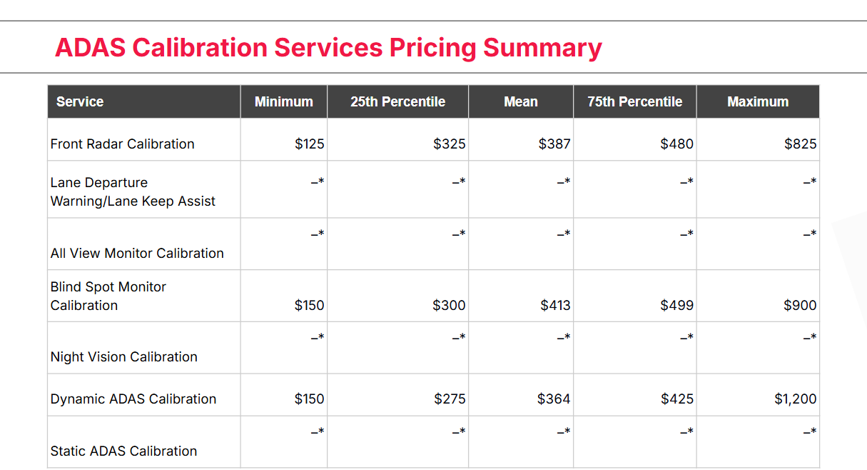We still observe a wide dispersion of pricing for one type of calibration. Yes there should be regional differences and a calibration in San Francisco should cost more than one in Poughkeepsie, but we observed differences in pricing that couldn’t just be explained by differences in cost-of-doing business. If you’re an outlier, beware of losing money on calibrations, or having insurance companies pushing back on your rates.