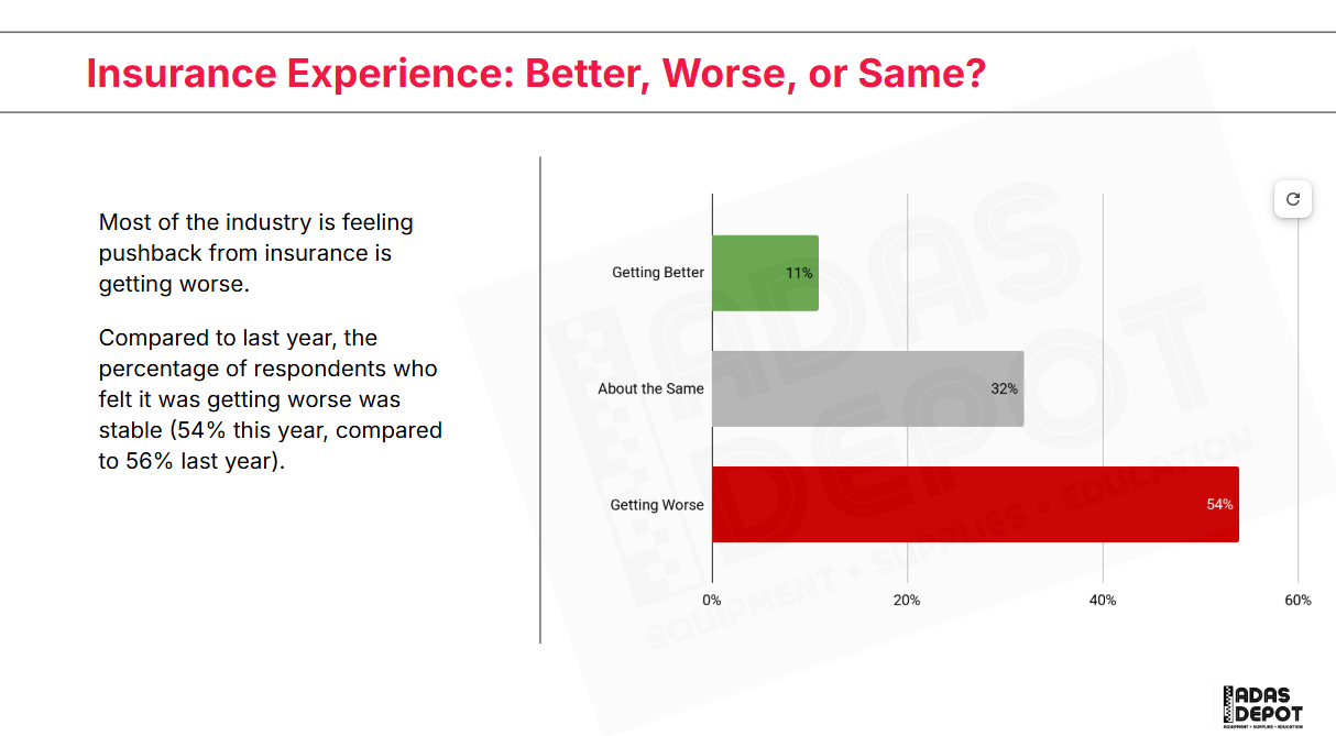 Insurance continues to be the biggest headache for the industry, with respondents calling out increased difficulties dealing with insurance companies. Even if insurance was tough to deal with last year, they felt it is increasingly difficult dealing with insurance. We know there is pressure on rates as well as push-back on necessary calibrations.
