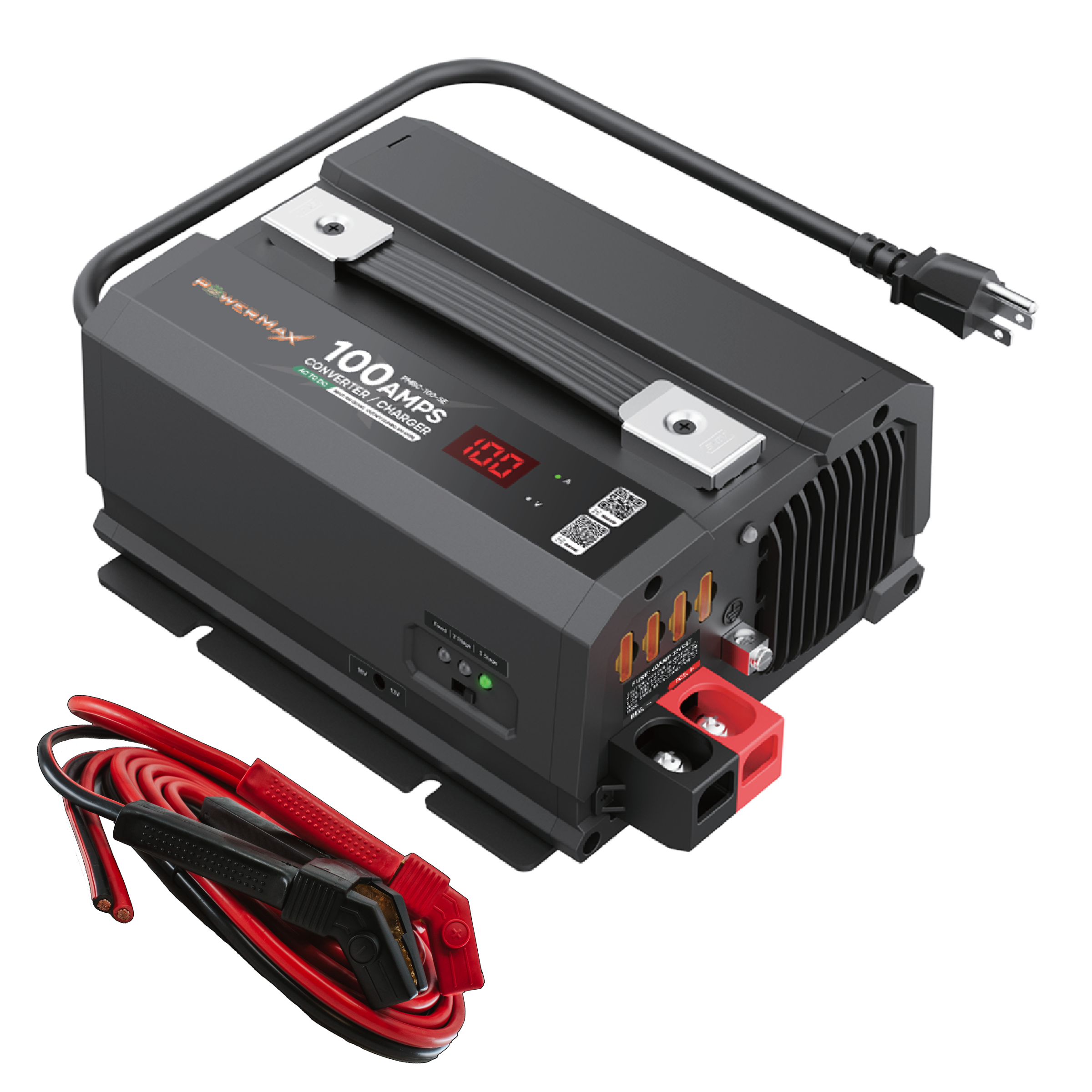The PowerMax PMBC-SE Series Ulta-Stable 12V Converter & Battery Charger (available in 75 amp, 100 amp, and 120 amp models) delivers the ultimate combination of power supply performance, smart battery charging, and constant voltage stability. Designed for RVs, marine systems, automotive dealerships, service centers, and off-grid power setups, these chargers provide clean, reliable 12V DC power with fully adjustable output voltage from 13V–16V.
