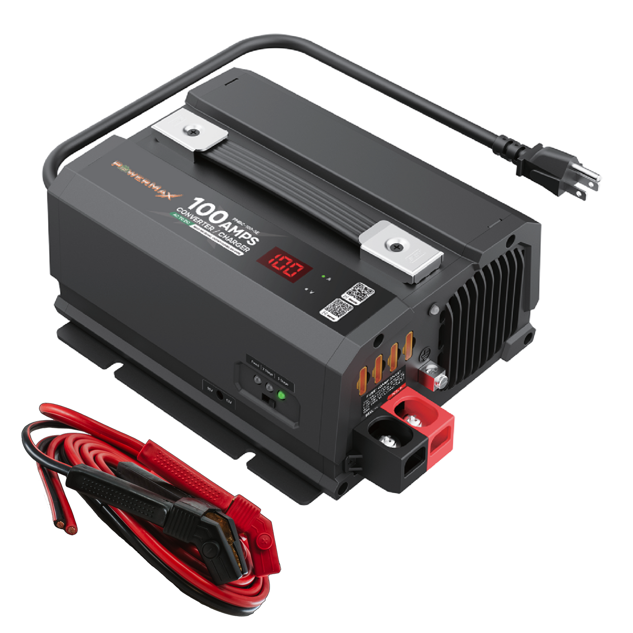 The PowerMax PMBC-SE Series Ulta-Stable 12V Converter & Battery Charger (available in 75 amp, 100 amp, and 120 amp models) delivers the ultimate combination of power supply performance, smart battery charging, and constant voltage stability. Designed for RVs, marine systems, automotive dealerships, service centers, and off-grid power setups, these chargers provide clean, reliable 12V DC power with fully adjustable output voltage from 13V–16V.