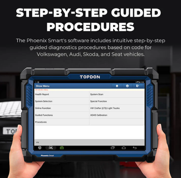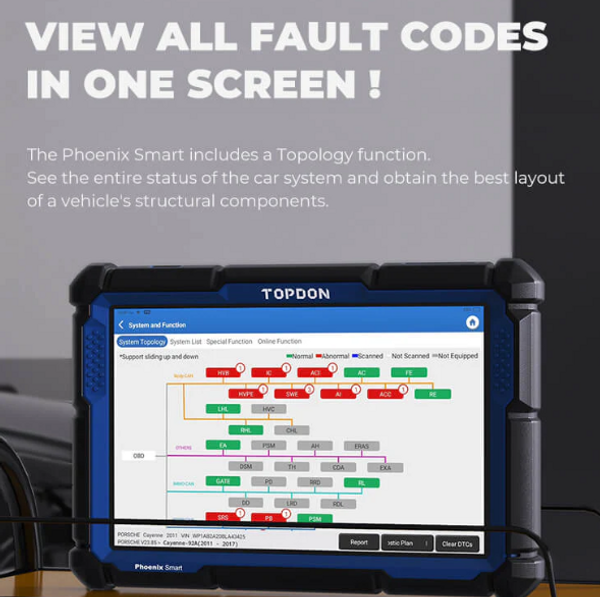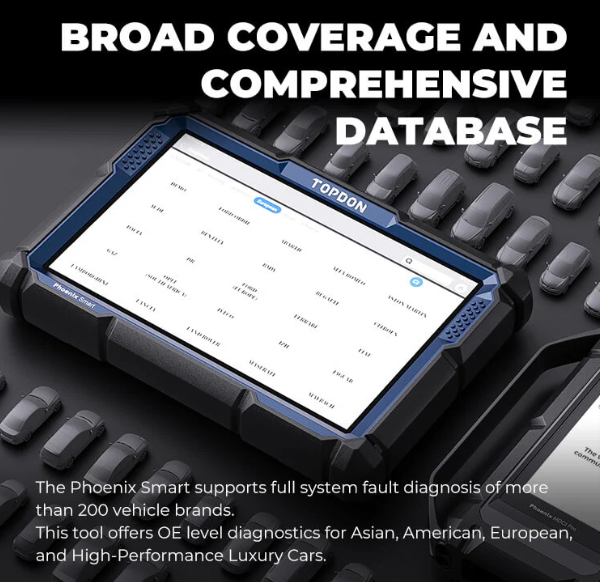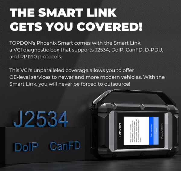 The Phoenix Smart® is part of TOPDON's new generation of intelligent diagnostic tools. Equipped with quad-core processors and a 10.1 inch HD touch screen, this tool allows you to diagnose fault codes with one click. Its 12600mAh battery can work all day without fear of losing power. The Phoenix Smart also supports Cloud-Based Programming for over 13 car brands and includes 2 years of free software upgrades. Combined with the MDCI Pro, this scanner gives you unprecedented coverage, intelligent diagnoses, and a wide array of maintenance functions.