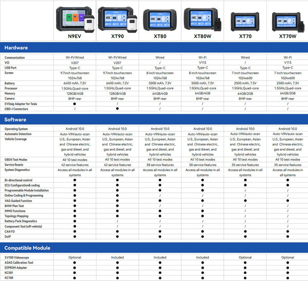 XT80W is an automotive smart diagnostic system with 8 inches LCD display, which is designed for mechanics, electricians, and car maintenance shops. It supports full OBDII function and automotive diagnostics for full-system, including reading ECU version information, reading fault codes, live data, and freeze frames. 38 common special functions are supported, such as throttle matching, ABS bleed, maintenance light reset, EPB test, SAS, BMS, injector coding, DPF regeneration, and TPMS reset. 98% vehicle coverage, work on more than 100 brands, 10000 cars.